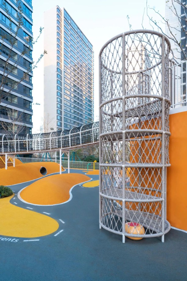 ▽連接場(chǎng)地的空中廊橋讓游玩空間充滿更多趣味
