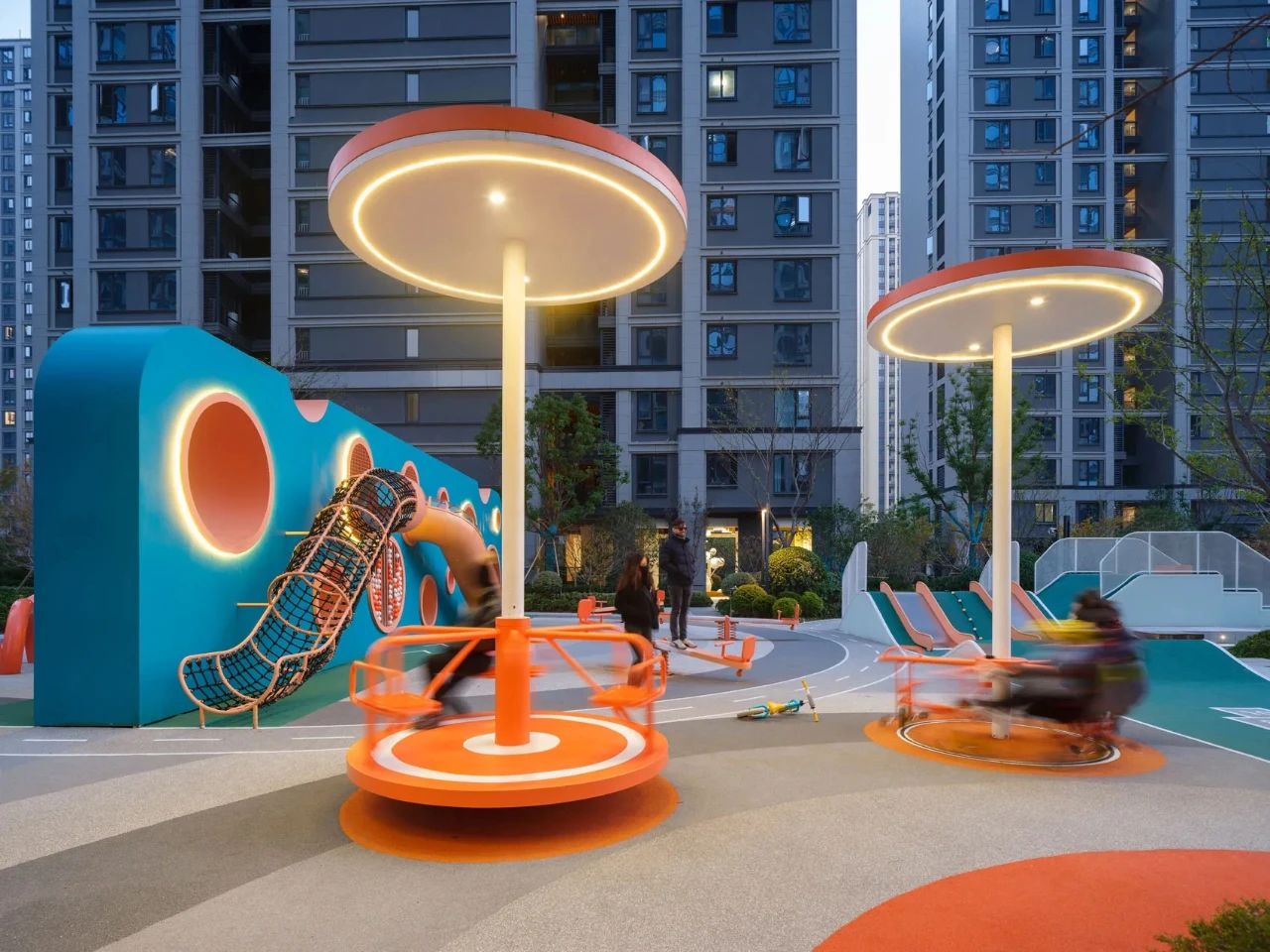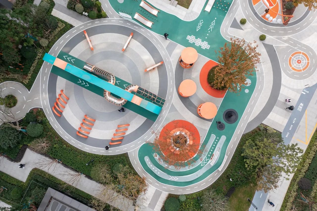 為了讓周圍樓的居民都能看到、辨認(rèn)和可讀,設(shè)計(jì)師用醒目的藍(lán)綠色創(chuàng)造了一個(gè)巨大的漢字,然后把它變成了一個(gè)游樂(lè)場(chǎng)。當(dāng)書(shū)法筆畫(huà)被幾何化時(shí),非常適合成為充滿障礙挑戰(zhàn)性和有趣功能性的游樂(lè)活動(dòng)方式,以鼓勵(lì)社交互動(dòng)。因此,它的名字,M?(my)Way-做我想做。
