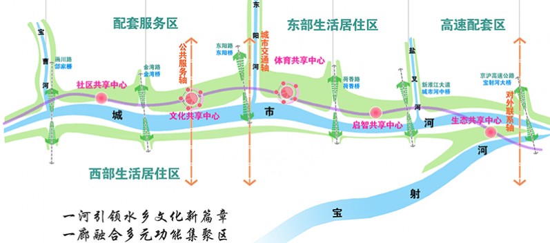 項目位于寶應(yīng)縣經(jīng)濟(jì)開發(fā)區(qū)南部,設(shè)計范圍為東起滬陜高速,南鄰七里路—寶射河,西至寶曹河,北臨人民路,總用地面積約56.25公頃。該項目規(guī)劃打造“一河一廊五心多軸”的整體空間結(jié)構(gòu)。同時對范圍內(nèi)各用地的功能性質(zhì)、優(yōu)勢項目,以及所需配套進(jìn)行研究,串聯(lián)各類用地,注入文化、休閑和生態(tài)等多種元素,將該片區(qū)打造成多元融合的城市公共片區(qū)。激發(fā)城市活力、達(dá)到區(qū)域功能協(xié)調(diào)、城鎮(zhèn)和諧發(fā)展的目的。